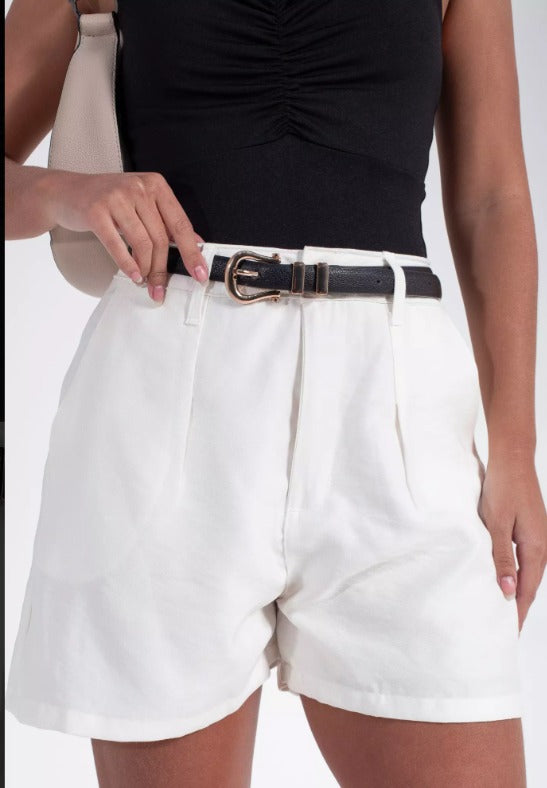 O Short Lea apresenta um design refinado com pences na frente e na parte traseira. Equipado com zíper e botão para um ajuste personalizado, conta também com passantes e bolsos laterais, oferecendo funcionalidade e um toque moderno ao visual.